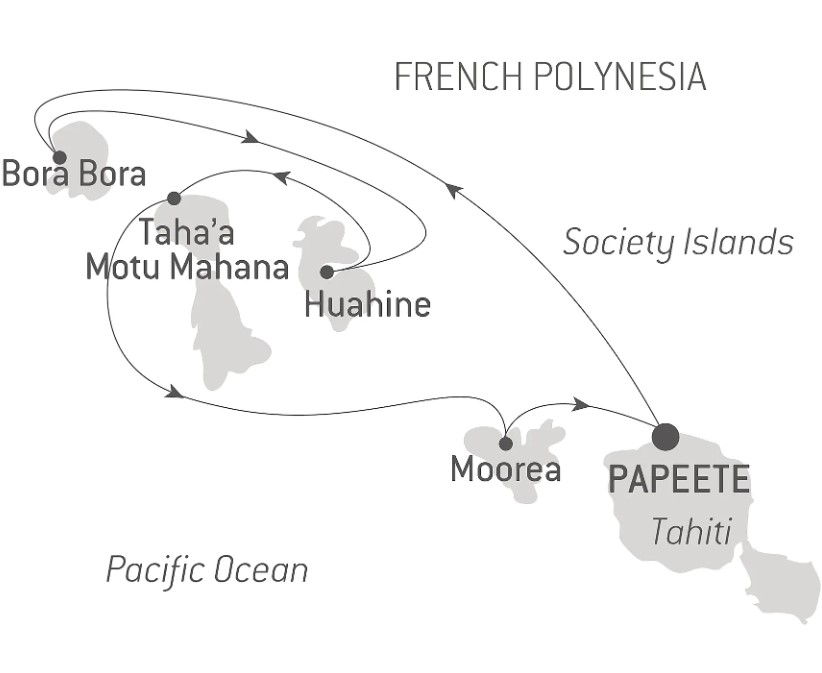 [도시 안내] ▶ 프렌치 폴리네시아의 타히티의 수도이자 최대 크기의 섬인 파페에테 관광▶ 고대 문화와 원시적인 아름다움을 가진 후아히네 기항▶ 바닐라 섬으로 불리우며, 폴 고갱의 프라이빗 비티 모투 마하나를 보유한 타하 기항▶ 오테마누 산의 신비로움이 가득한 남태평양의 진주 보라보라 기항▶ 화산섬의 신비한 절경이 시작되는 시시각각 변하는 모레아 기항