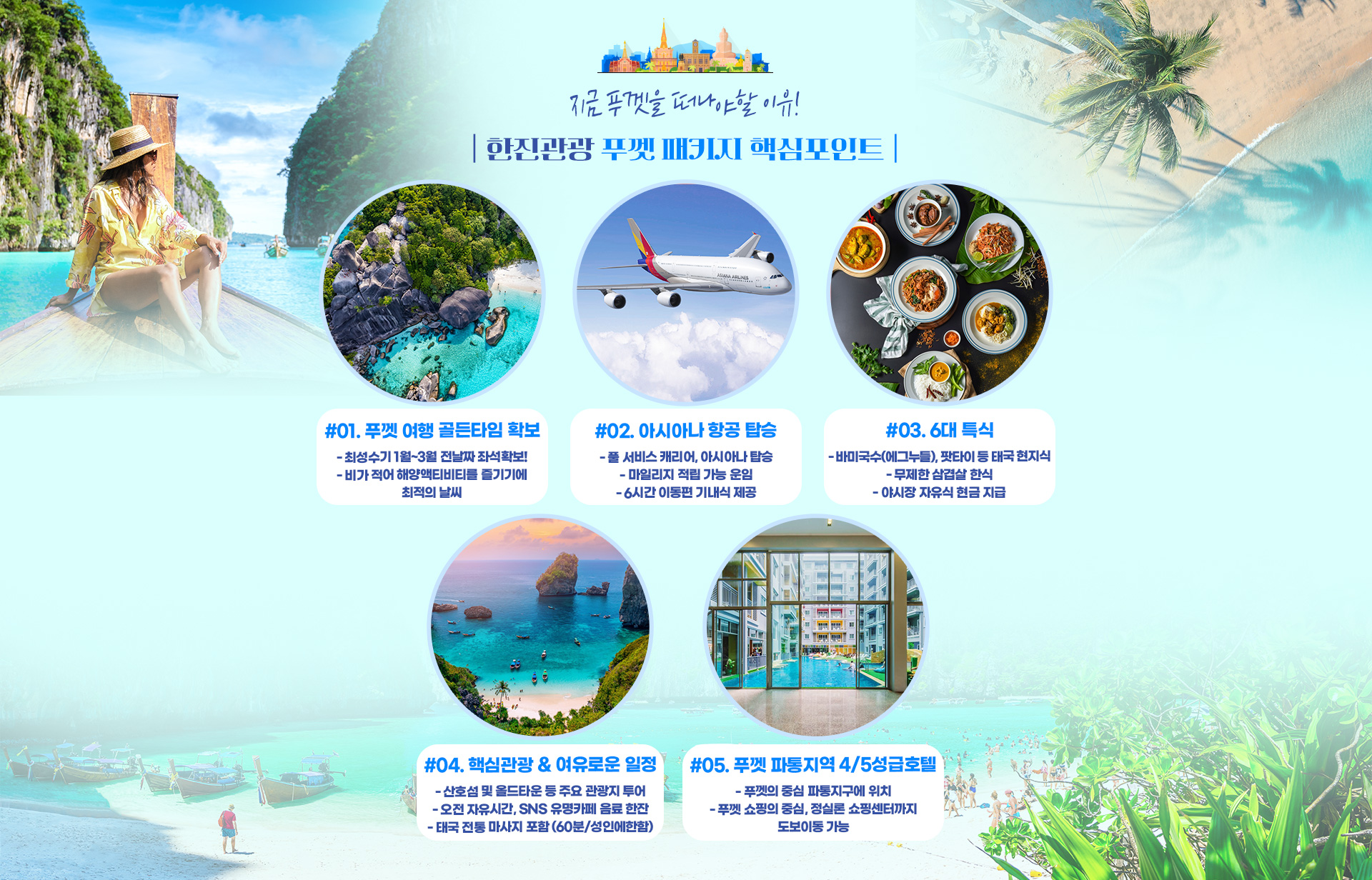 [아시아나]파도가 전하는 휴식, 푸껫 패키지 5일 [4성급호텔/마사지1시간/6대특식]